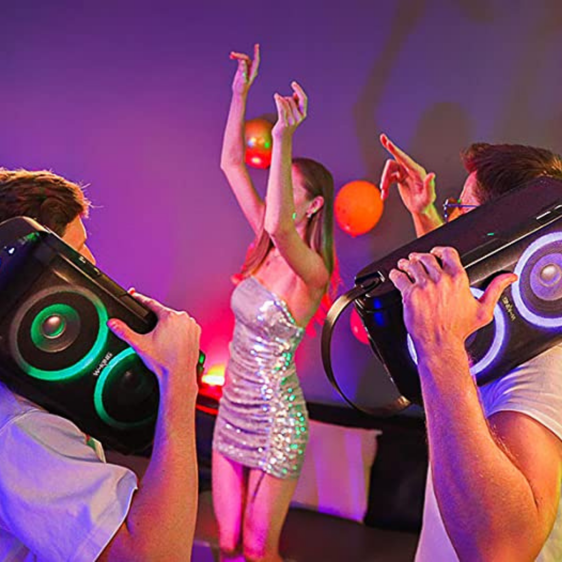 Der hochwertige kabellose Lautsprecher W-KING T11 mit 100 W ist der perfekte Party-Lautsprecher. Das farbenfrohe, moderne Design sowie die Anschlüsse für Gitarre und Mikrofon machen Ihre Party erstklassig.