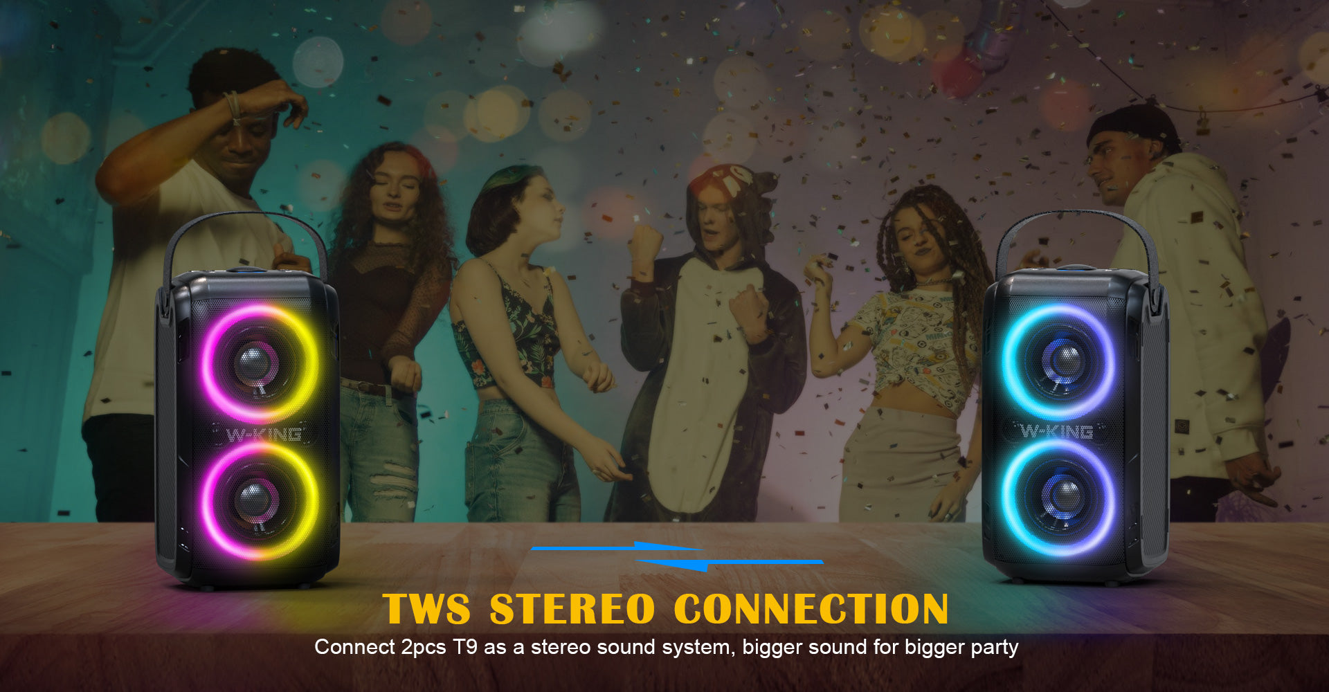 Dank seiner Wasserdichtigkeitsklasse IPX6 ist der W-King T9-2 spritzwasser- und regenfest und somit die perfekte Wahl für Outdoor-Abenteuer, Strandausflüge oder Spaß am Pool.